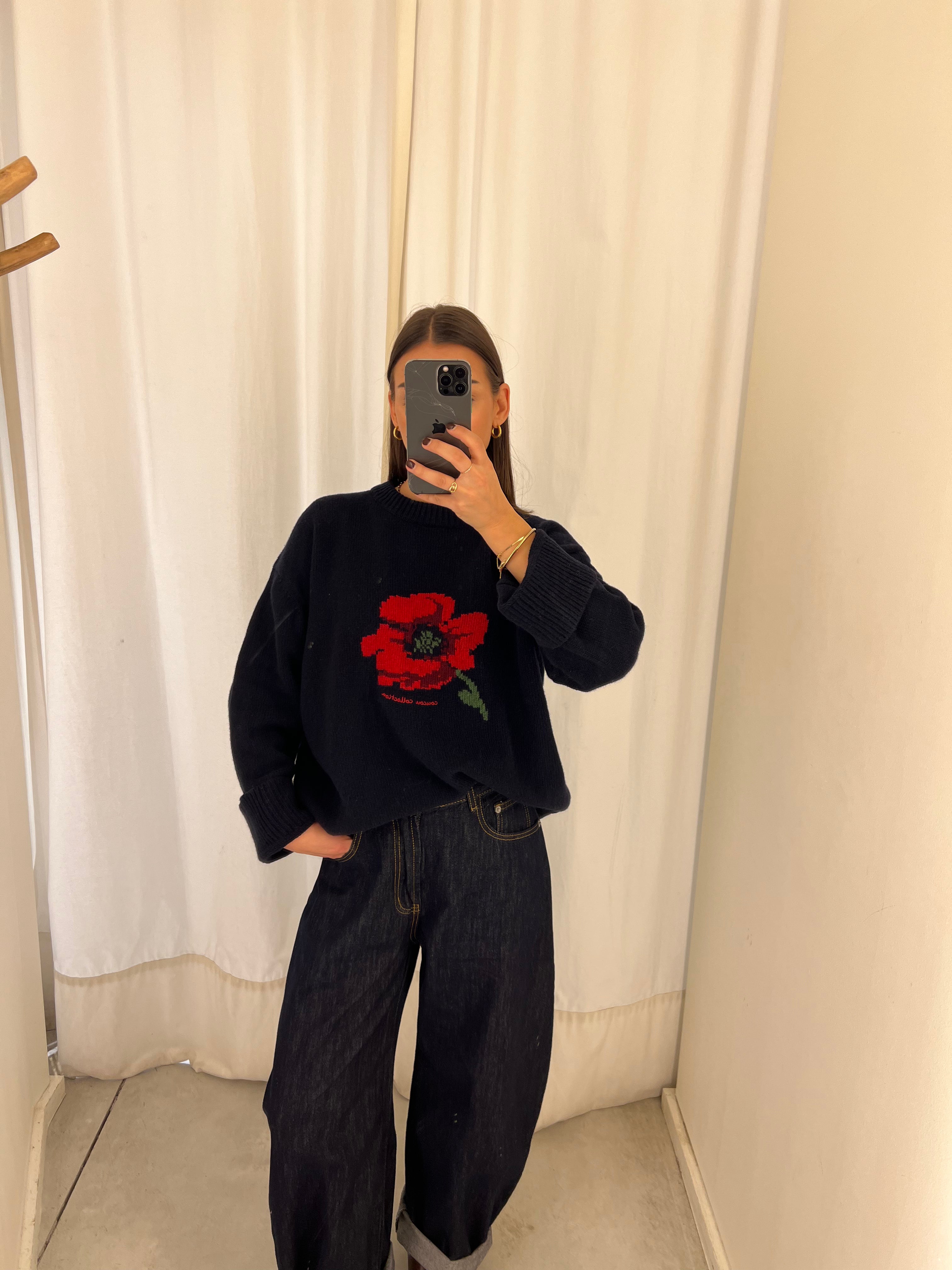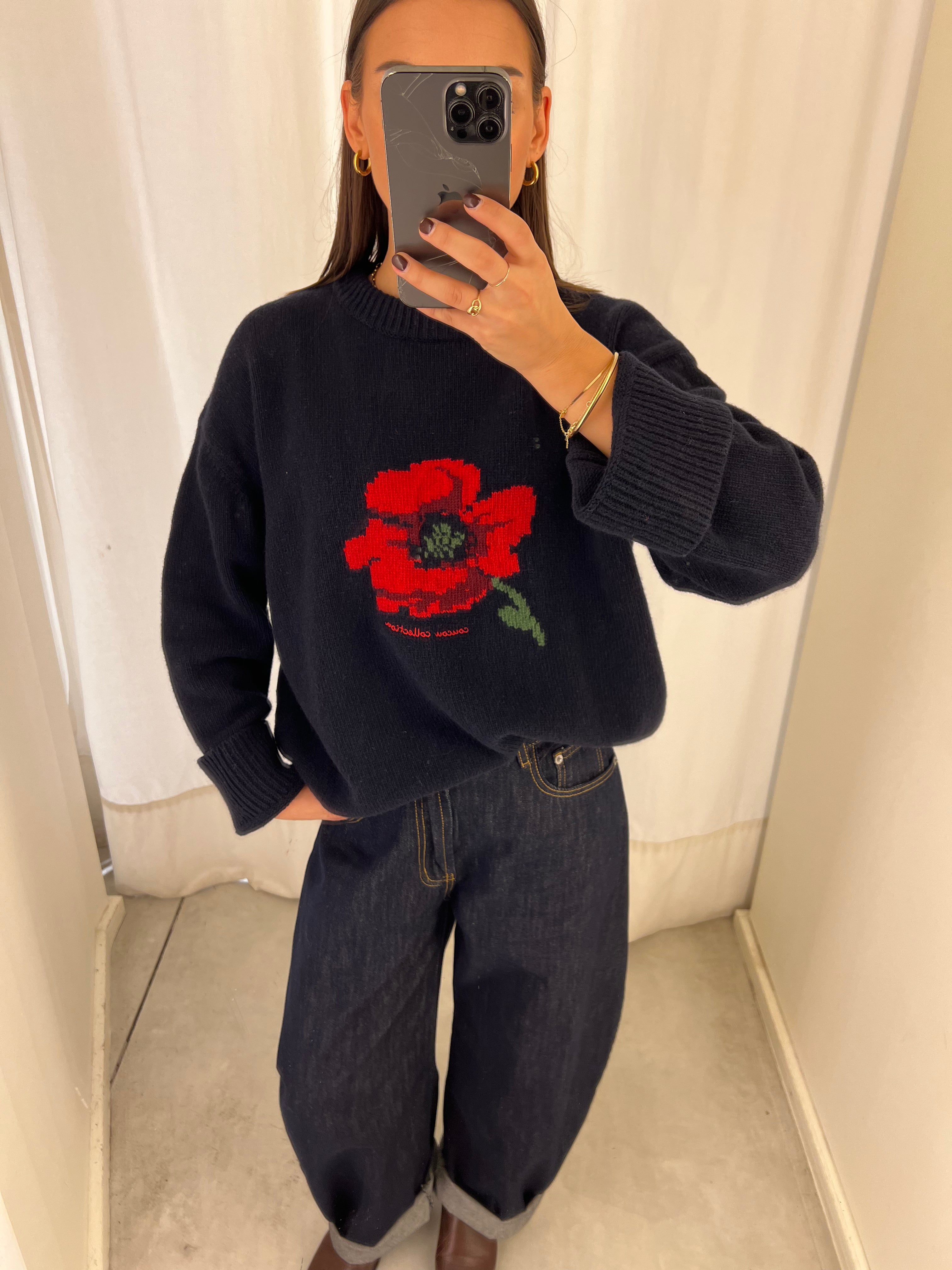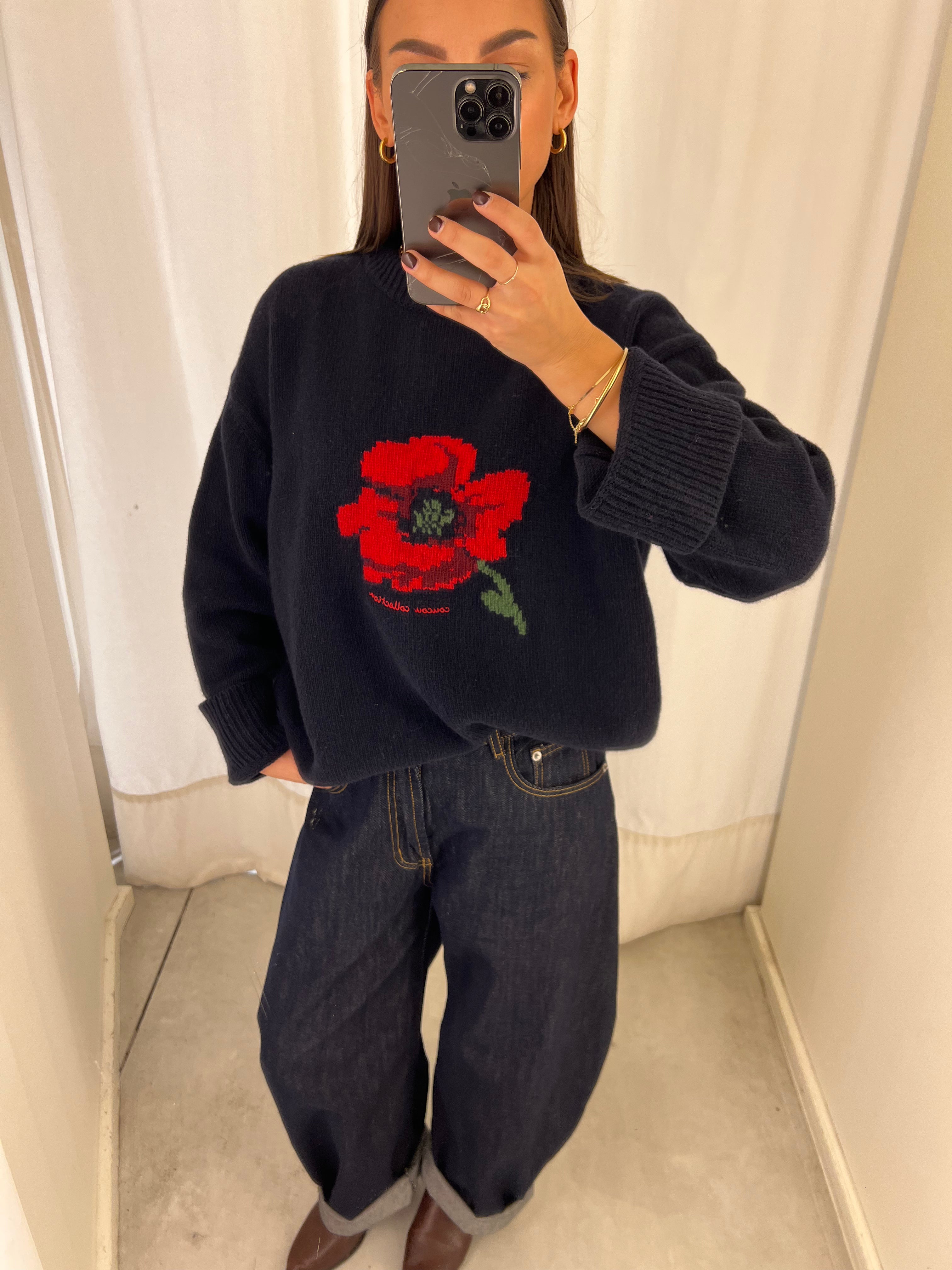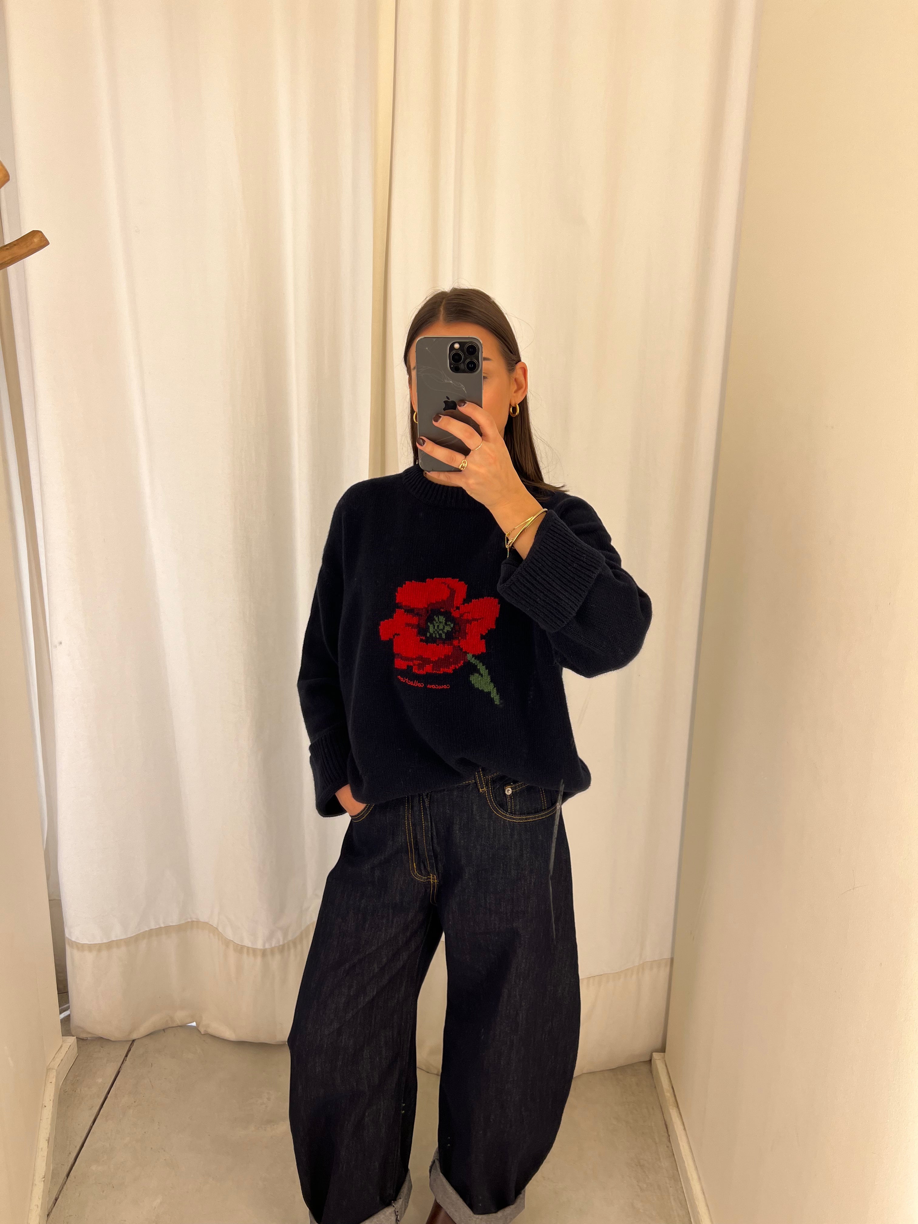 coucou macaron knit poppy print